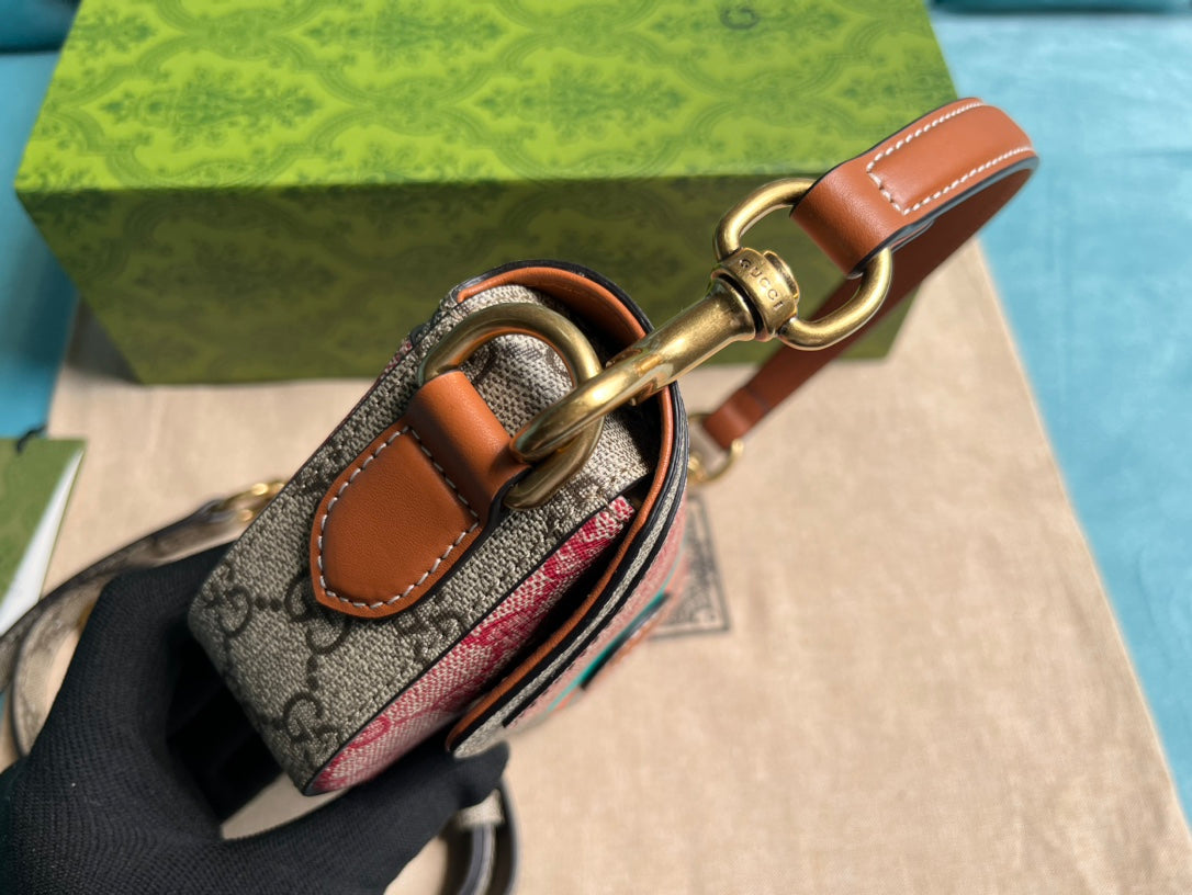 GG MINI 13 HANDBAG IN LIGHT PINK AND BEIGE CANVAS