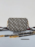 GG MINI 25 PRINTED SADDLE BAG IN EICRU BEIGE CANVAS
