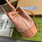 GG OPHIDIA MINI 19 BUCKET LIGHT PINK CANVAS AND CALFSKIN