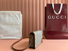 Gucci Emblem Mini Shoulder Bag Beige Brown Canvas Leather 244486