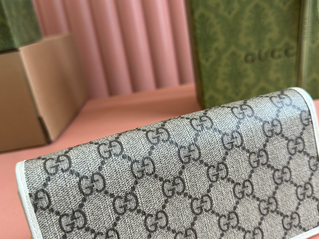 HORSEBIT 1955 WALLET IN BEIGE EBONY CANVAS MIX WHITE CALFSKIN GOLD CHAIN