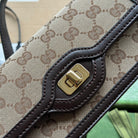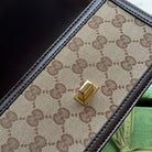 LUCE MINI SHOULDER BAG 20 IN BEIGE CANVAS AND DARK BROWN CALFSKIN TRIM GOLD HARDWARE
