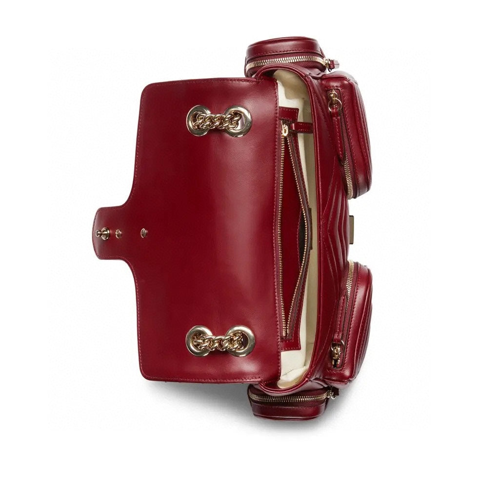 MARMONT SMALL MULTI-POCKET BAG 25 IN CURRANT RED CALFSKIN GOLD HARDWARE