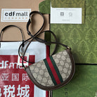 OPHIDIA MINI SHOULDER BAG 20 WITH WEB IN BEIGE EBONY CANVAS MIX BROWN CALFSKIN