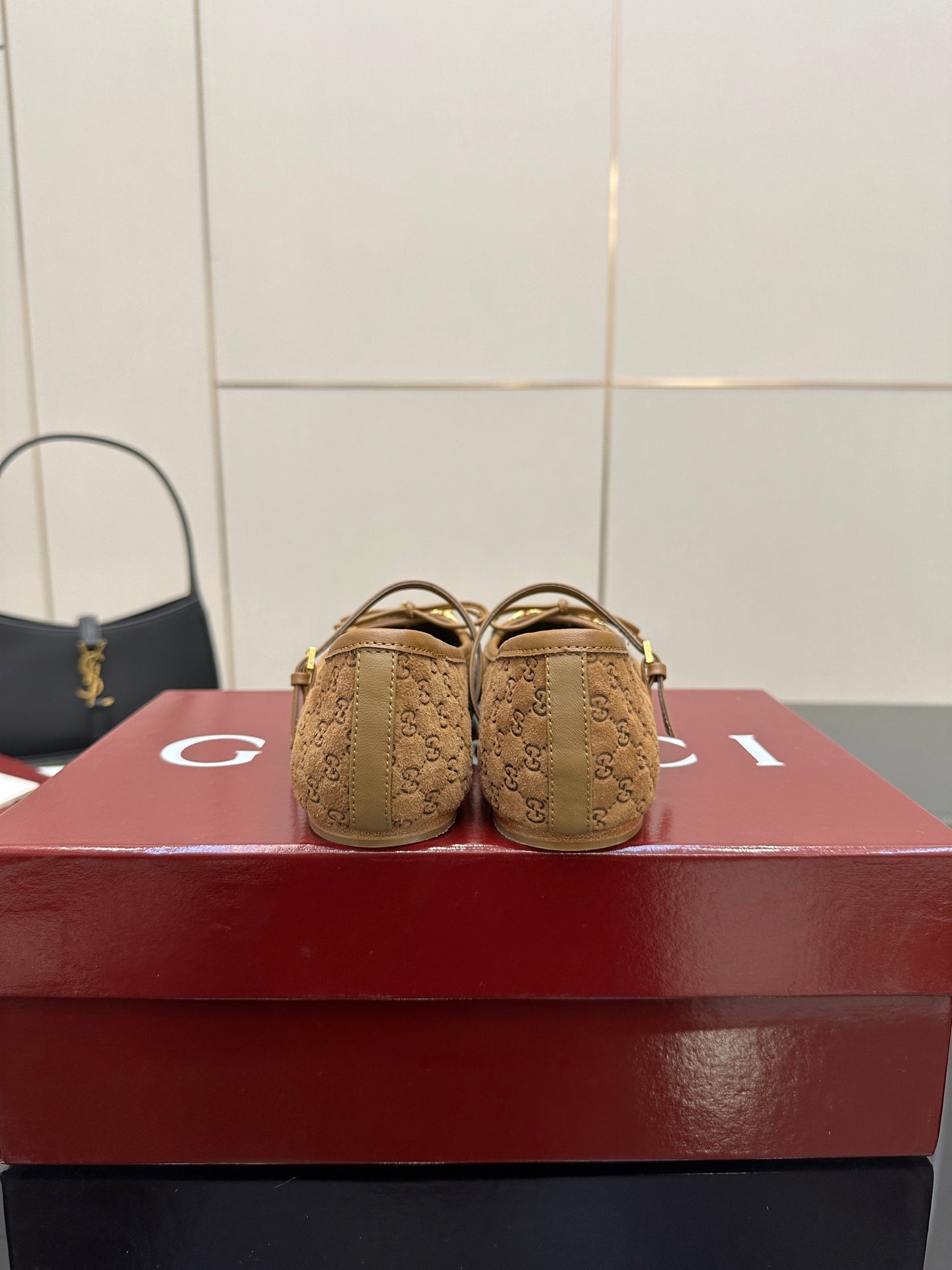 GC 25 Horsebit Ballet Flat Dark Brown Monogram Suede