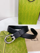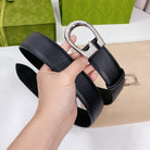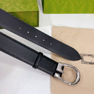 G BELT SILVER BUCKLE BLACK LEATHER 4.0CM