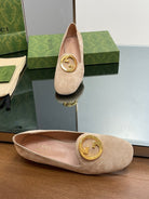 BLONDIE LOGO-PLAQUE LOAFERS IN ECRU BEIGE SUEDE
