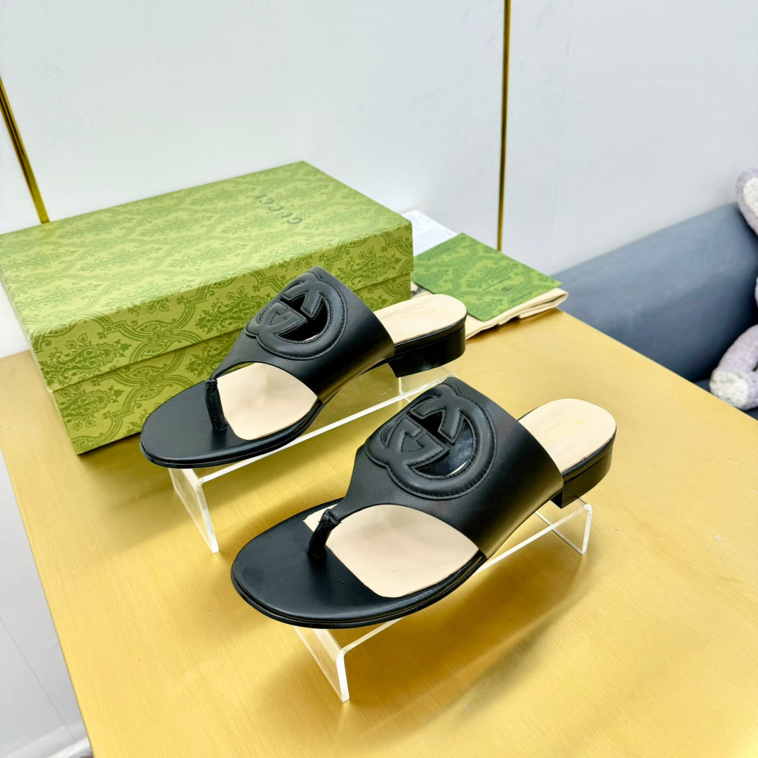 BLONDIE THONG SANDAL IN BLACK LAMBSKIN