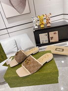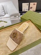 GG EXCLUSIVE SLIDE SANDAL IVORY AND BROWN FABRIC