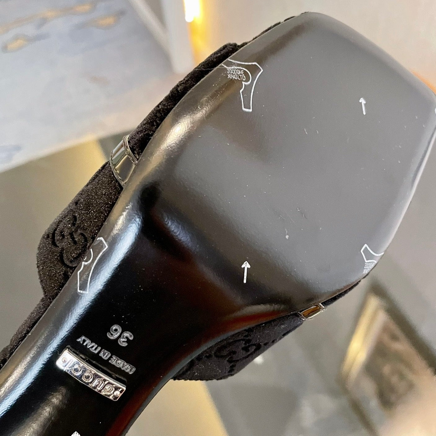 GG VELVET HIGH HEEL SANDALS WITH BEAUTIFUL LOGO DETAILS BLACK