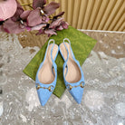 WOMEN'S SLIDE SANDAL WITH GG CROSS SKY CANVAS