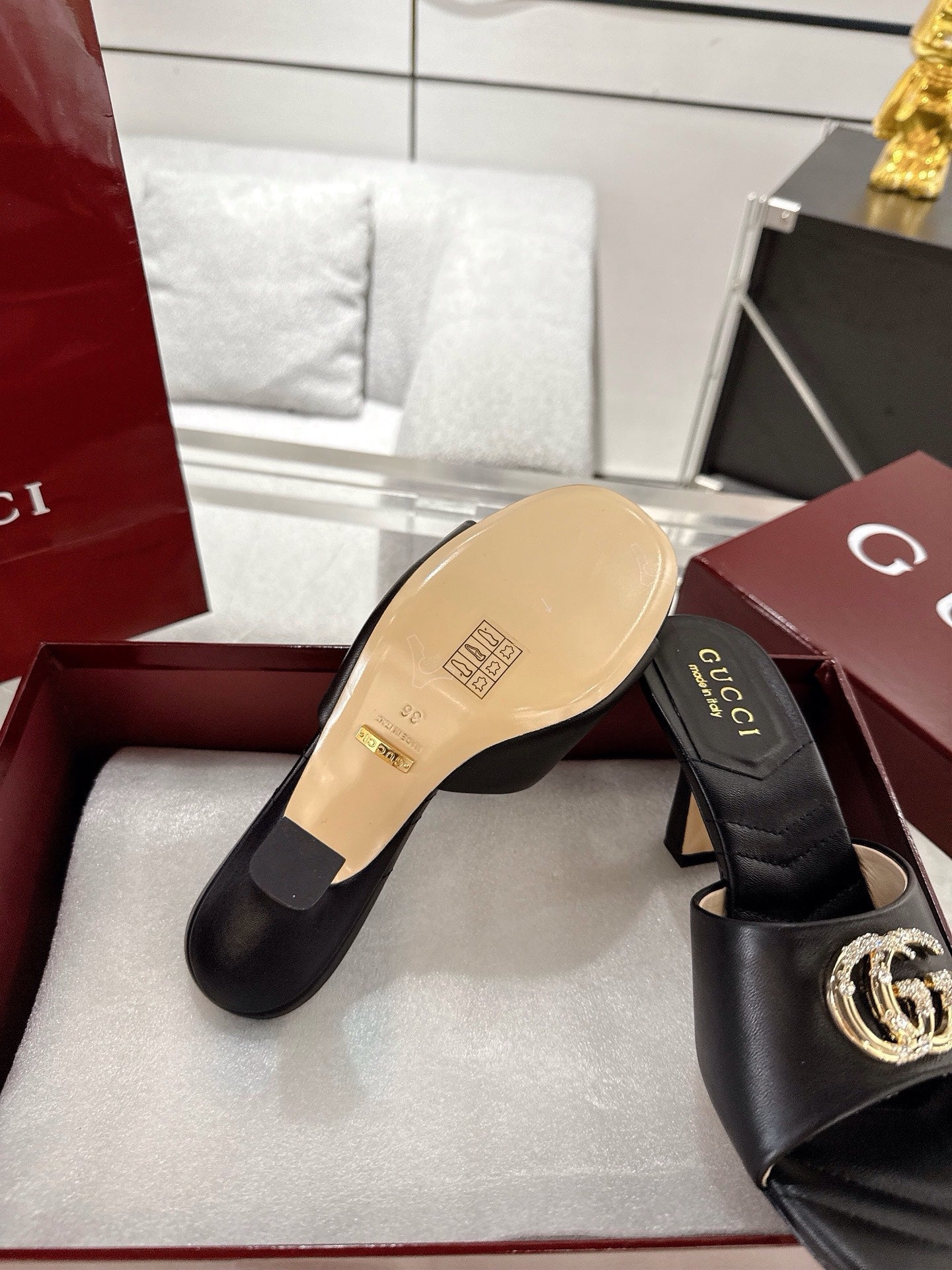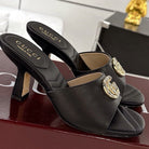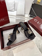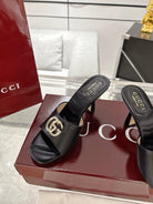 GC 2025 Double G High Heel Sandals Black Sheepskin 292469