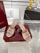 GC 2025 Double G High Heel Sandals Pink Sheepskin 292471