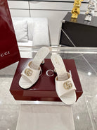 GC 2025 Double G High Heel Sandals White Sheepskin 292468