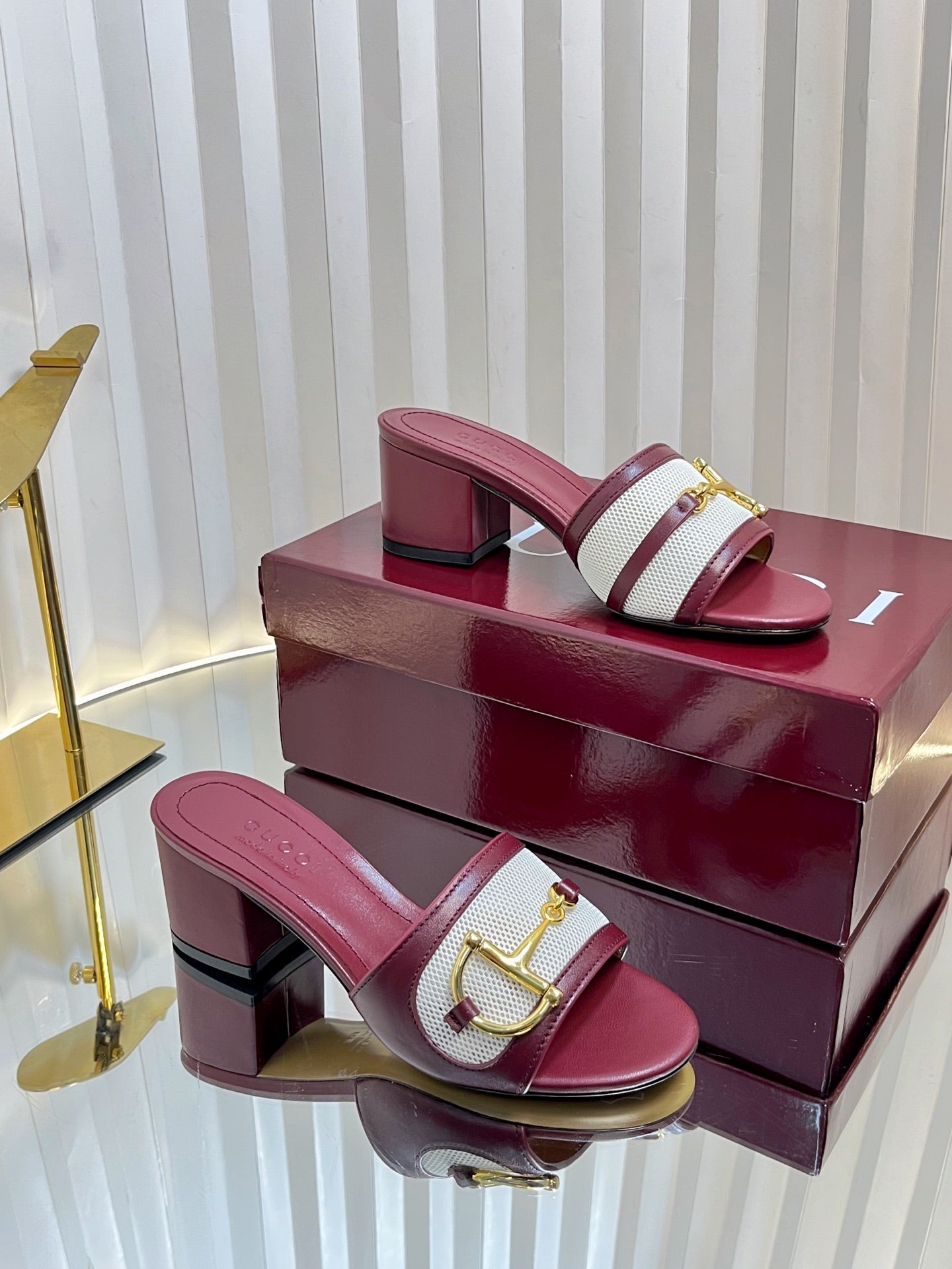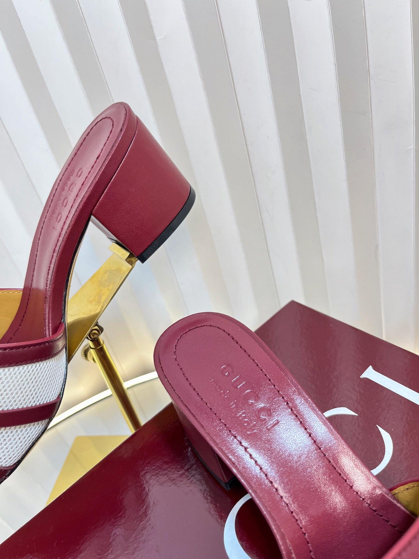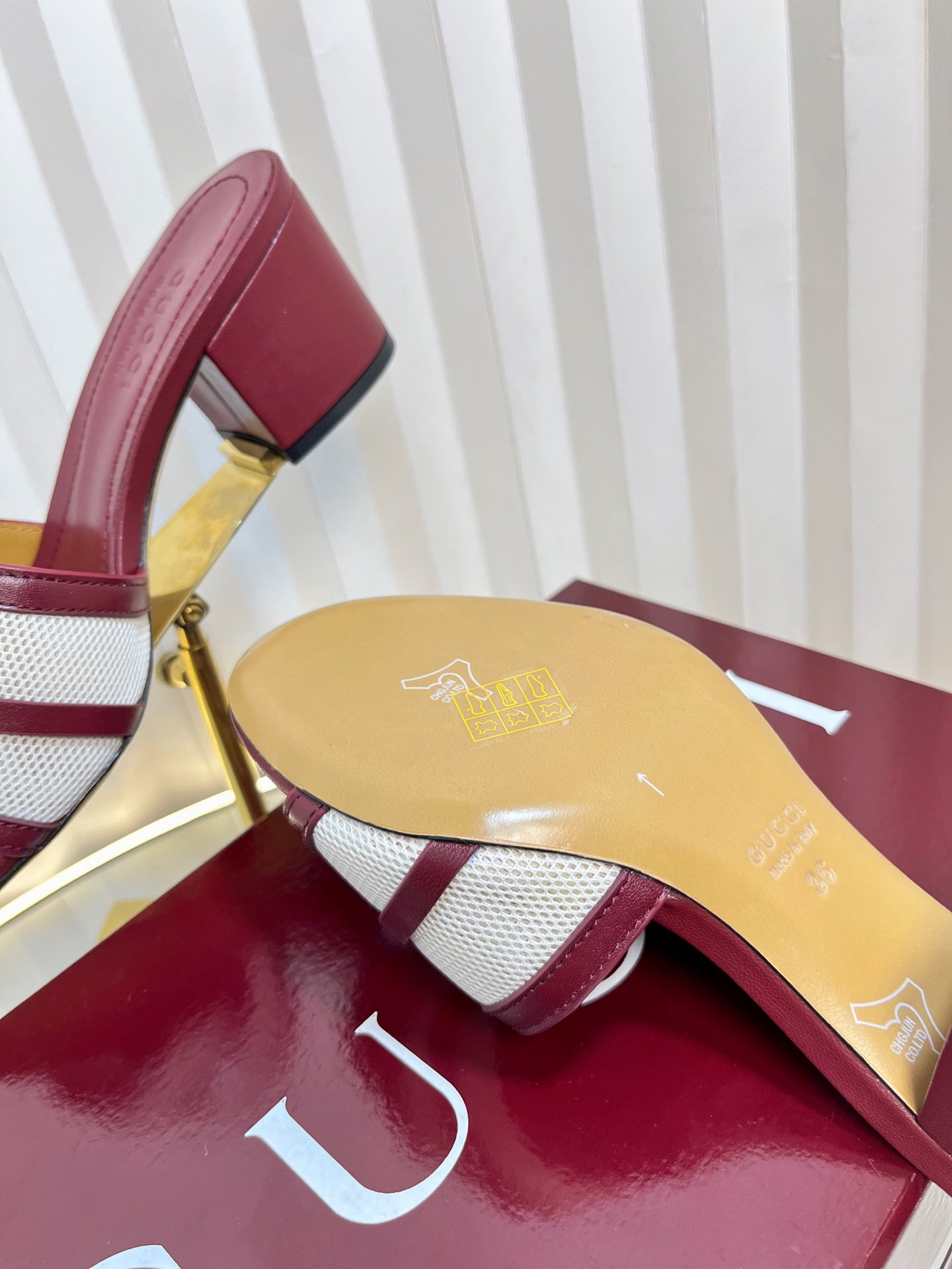 GC 25 Horsebit GG 50mm Sandals Red Canvas Sheepskin 294665