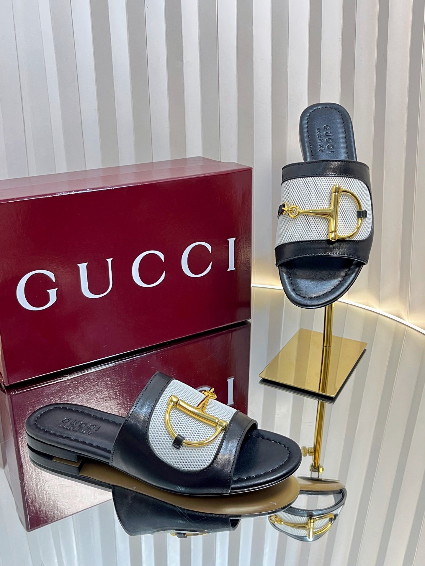 GC 25 Horsebit GG Sandals Black Canvas Sheepskin 294664