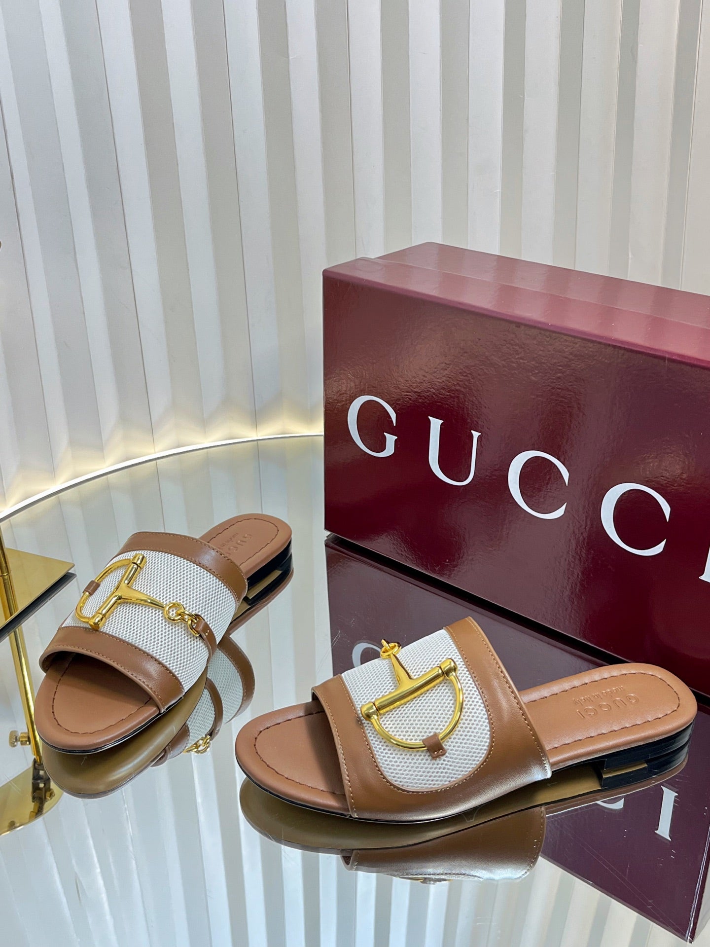 GC 25 Horsebit GG Sandals Brown Canvas Sheepskin 294662
