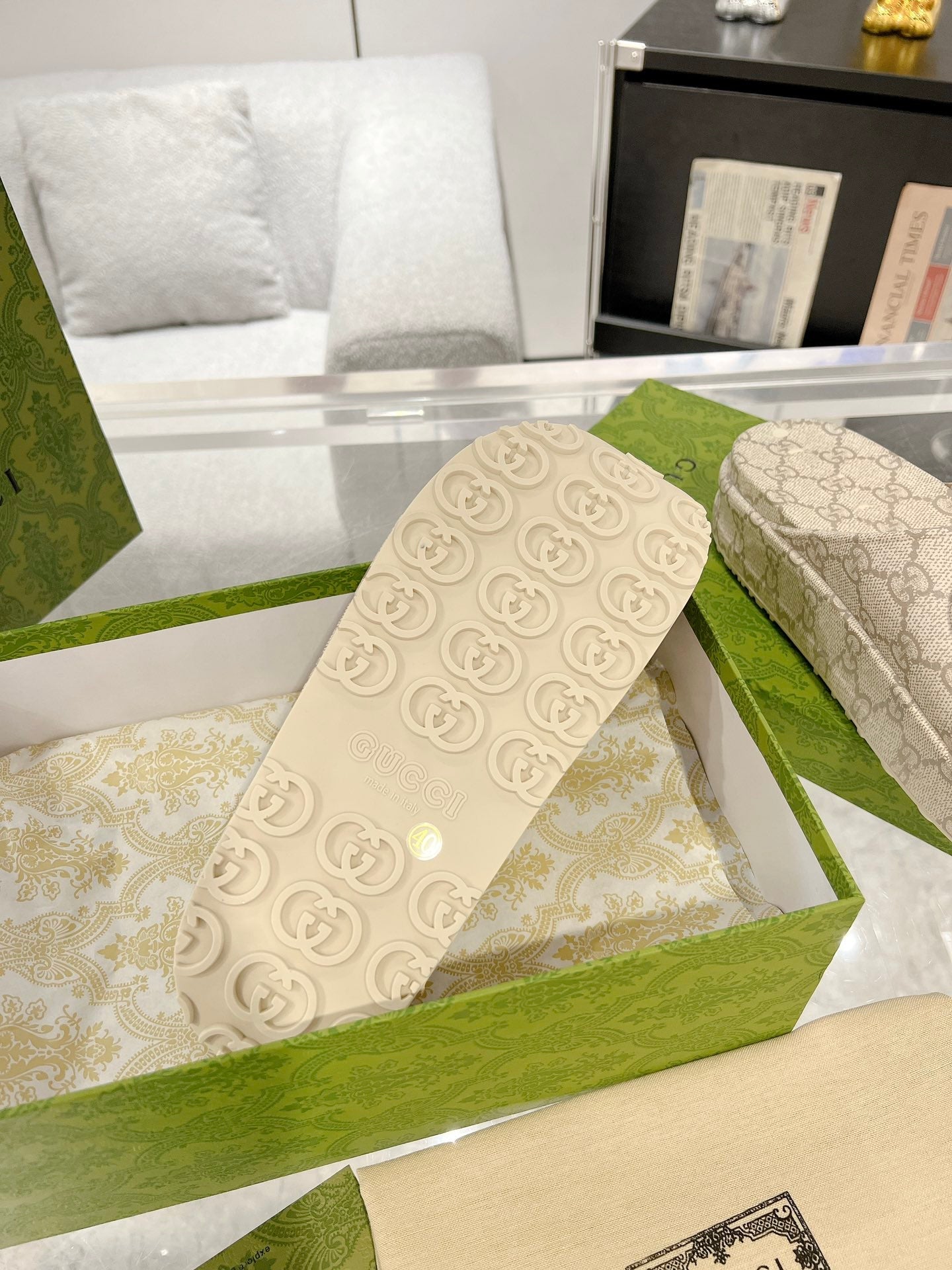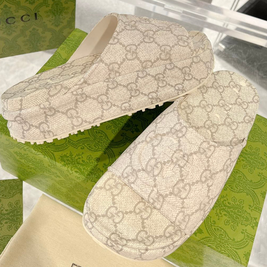 GC 25 Interlocking G 50mm Slide Sandal Monogram Beige Cowhide 292388