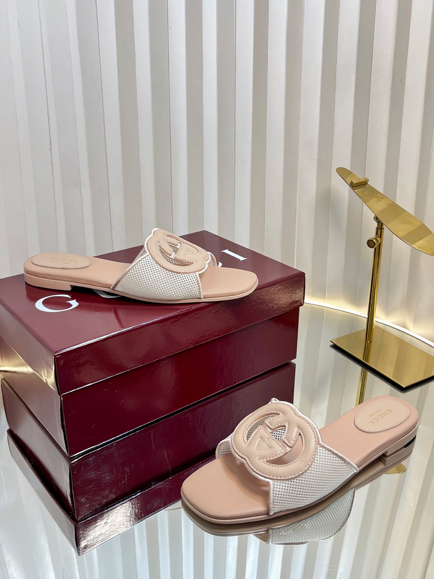 GC 25 Interlocking G Slide Sandal Nude Canvas Cowhide 294646