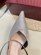 GC Crystal-Embellished Slingbacks Silver Silk Sheepskin 294610