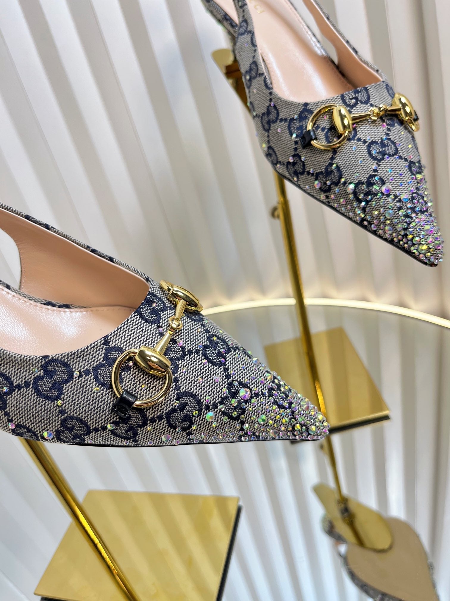 GC Crystal Horsebit Slingback 50mm Beige mix Blue Canvas lambskin 294616