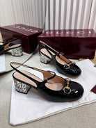 GC Horsebit Slingback with Crystal 60mm Black Patent Leather 294602