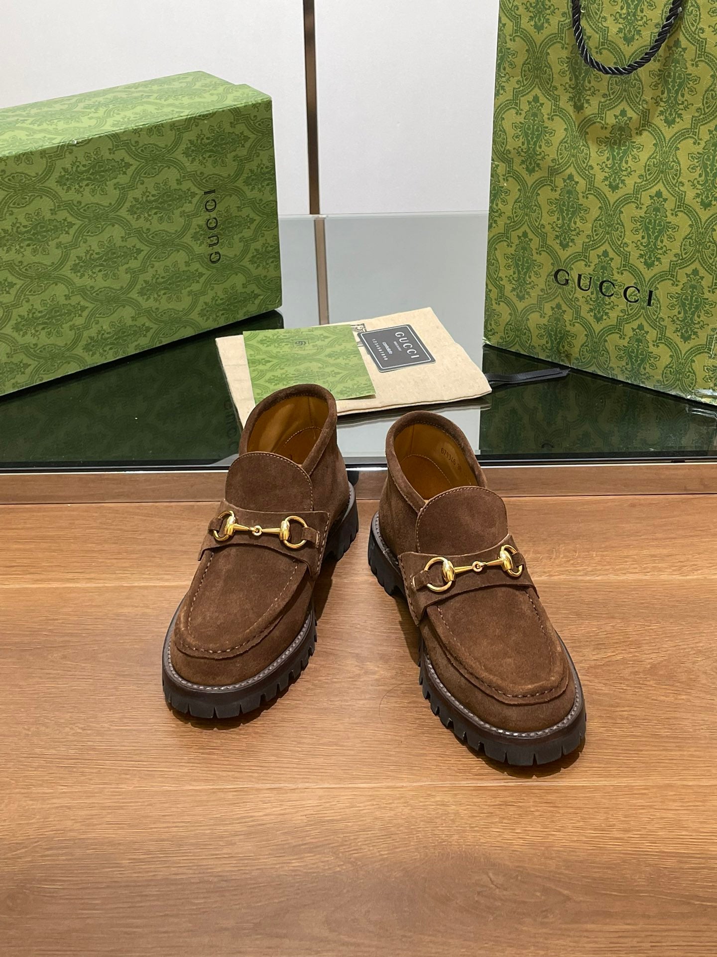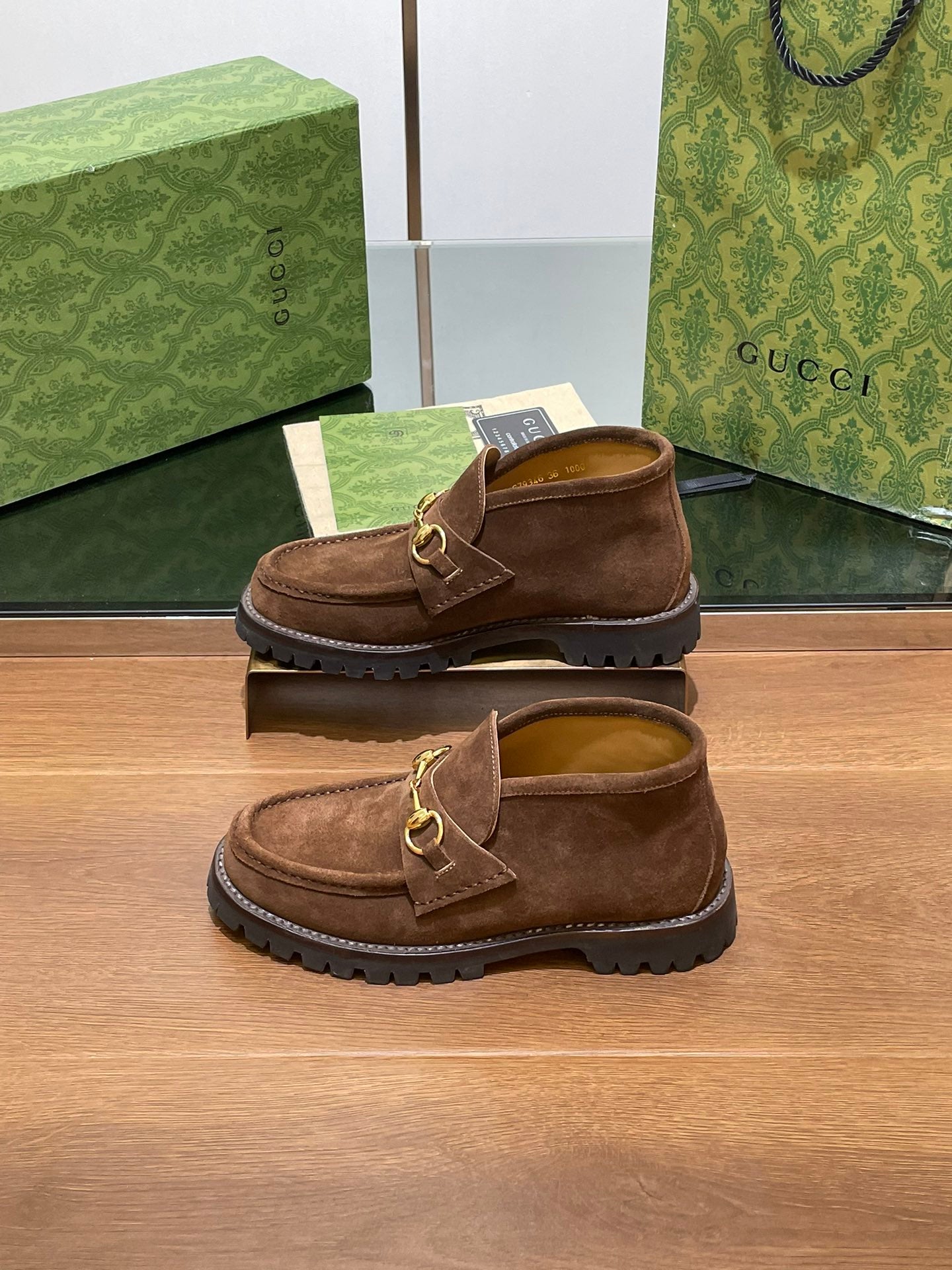 GG Ankle Boot With Horsebit 15 Dark Brown Suede
