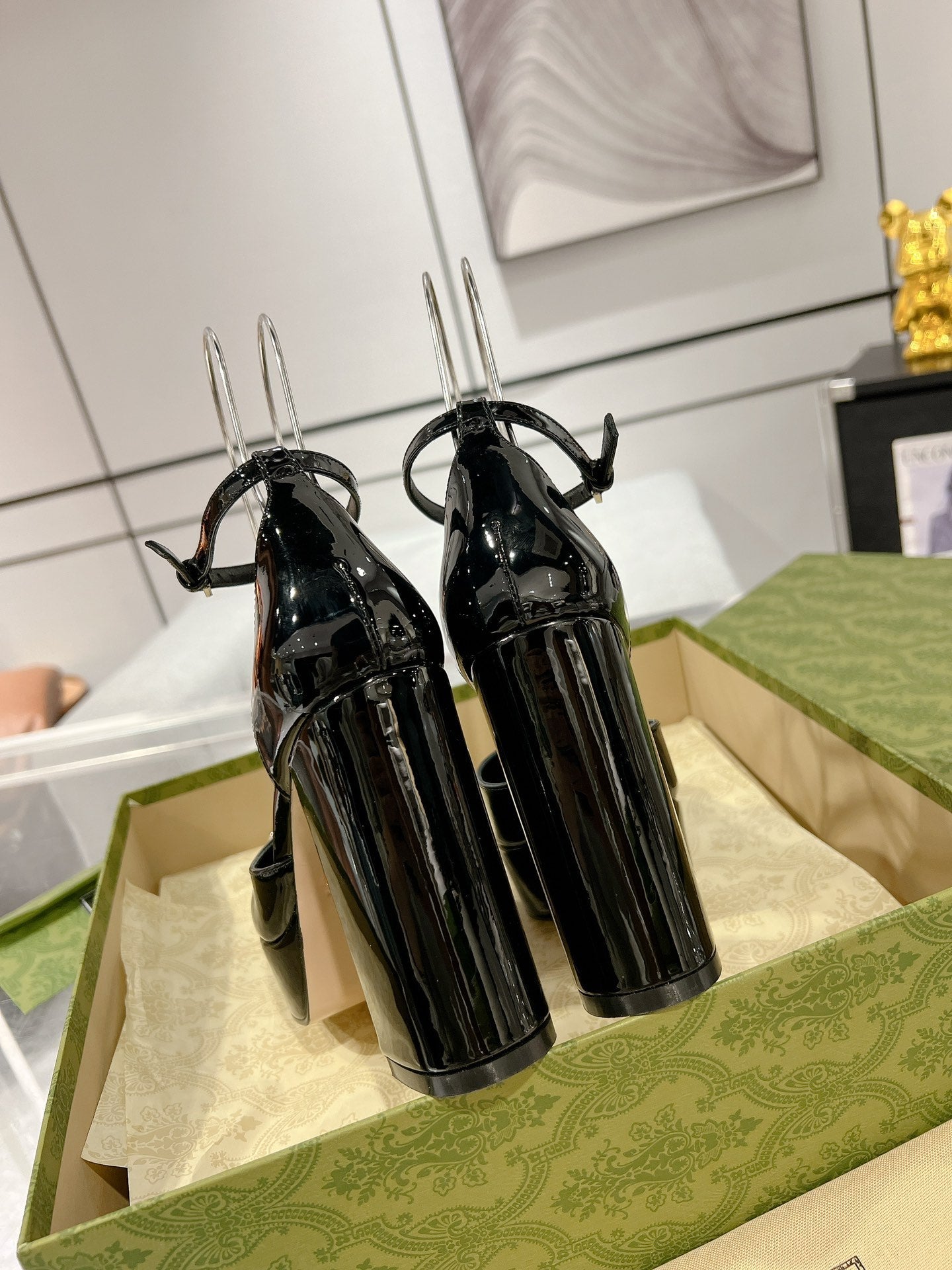GG CRYSTALS PLATFORM PUMPS BLACK CALFSKIN