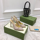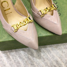 GG HIGH HEEL SLINGBACK BEIGE CREAM CALFSKIN WITH CHAIN