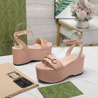 GG Horsebit Wedges Sandals Pink