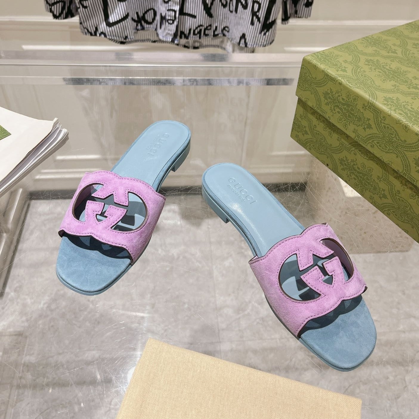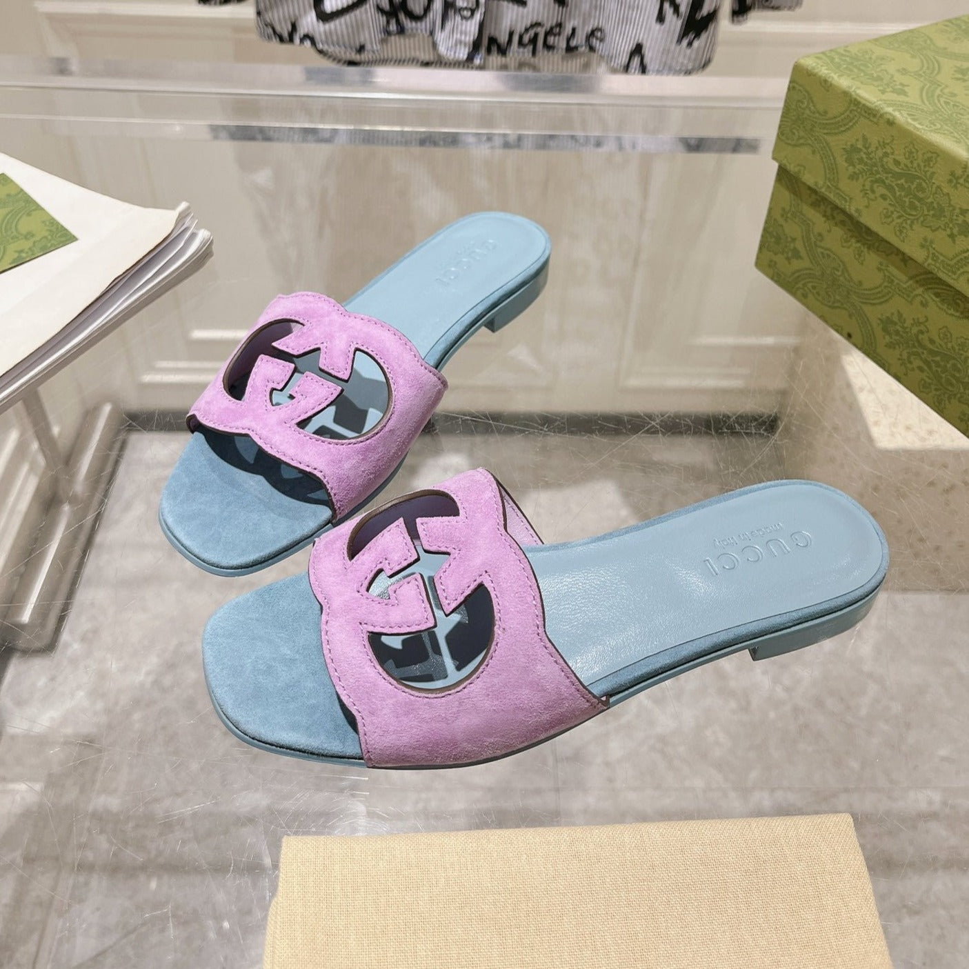 GG Interlocking double G hollow slippers Orchid Purple Blue