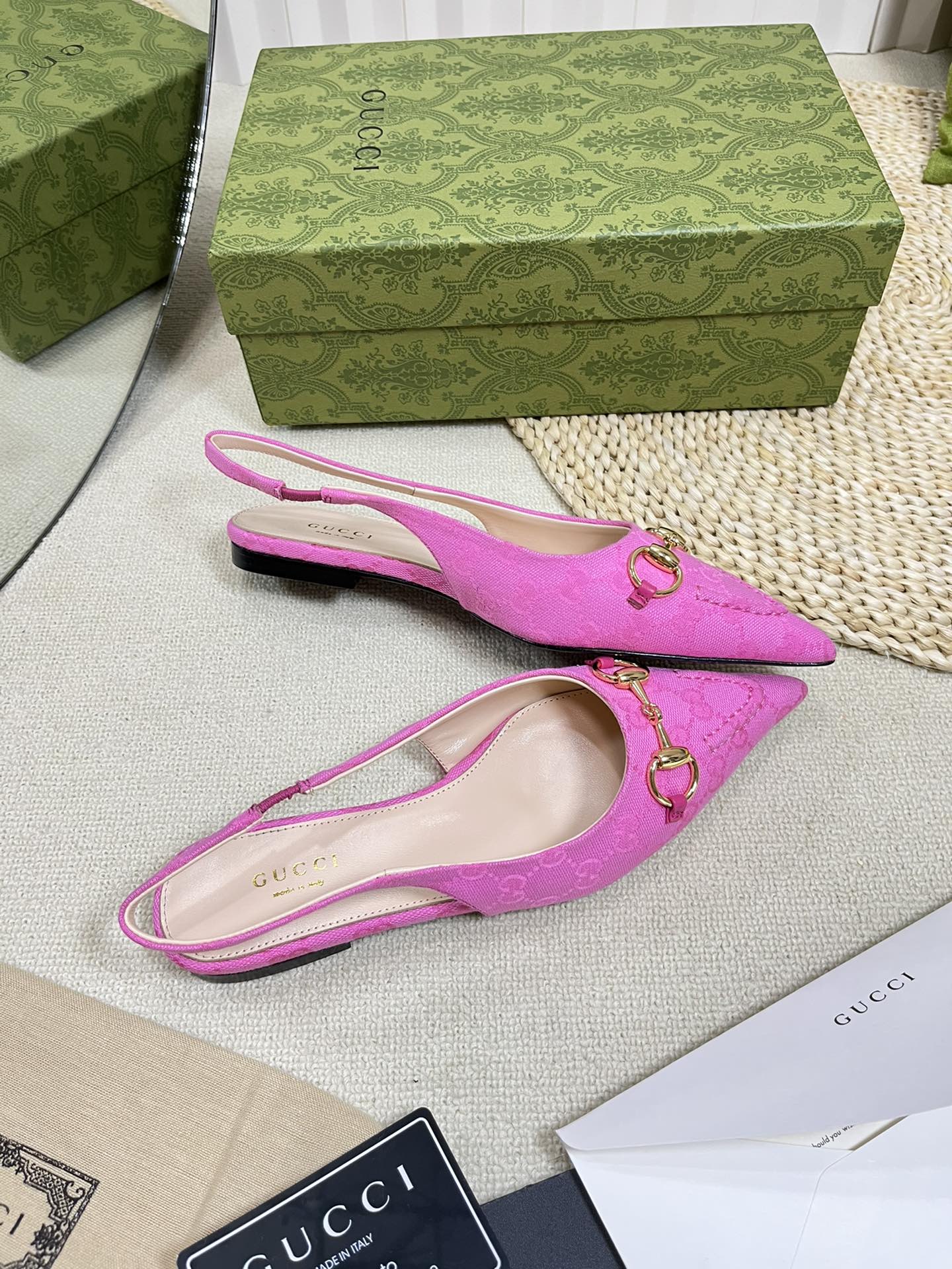 GC Horsebit Slingback Pump 10mm Pink Canvas Sheepskin 294543