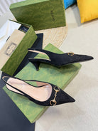 GC Horsebit Slingback Pump 50mm Black Canvas Sheepskin 294558