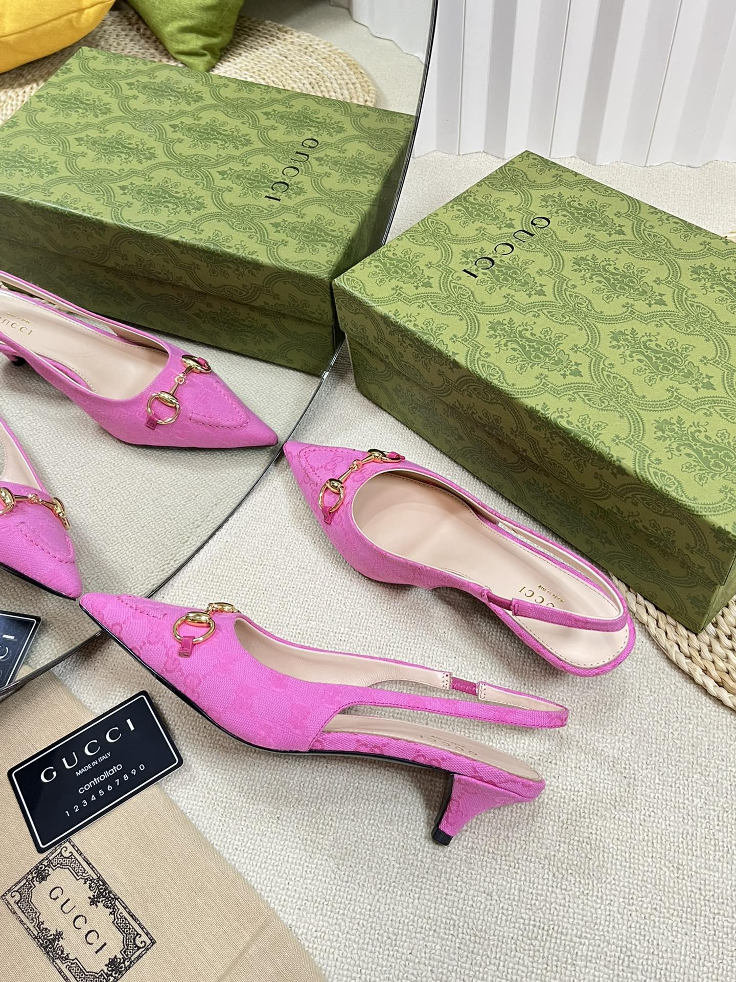 GC Horsebit Slingback Pump 50mm Pink Canvas Sheepskin 294547