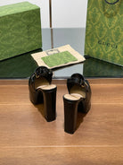 GG WOMEN'S HORSEBIT PLATFORM SLINGBACK IN BLACK EMBOSSED CALFSKIN