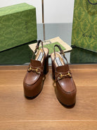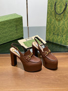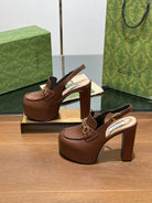 GG WOMEN'S HORSEBIT PLATFORM SLINGBACK IN DARK BROWN CALFSKIN