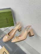GG WOMEN'S HORSEBIT SLINGBACK 75MM IN TAN BEIGE CALFSKIN
