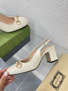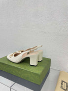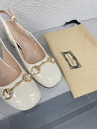 GG WOMEN'S HORSEBIT SLINGBACK 75MM IN WHITE CALFSKIN