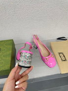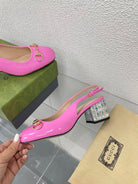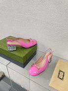 GG WOMEN'S HORSEBIT SLINGBACK IN FUSCIA PINK CALFSKIN WITH RHINSTONES