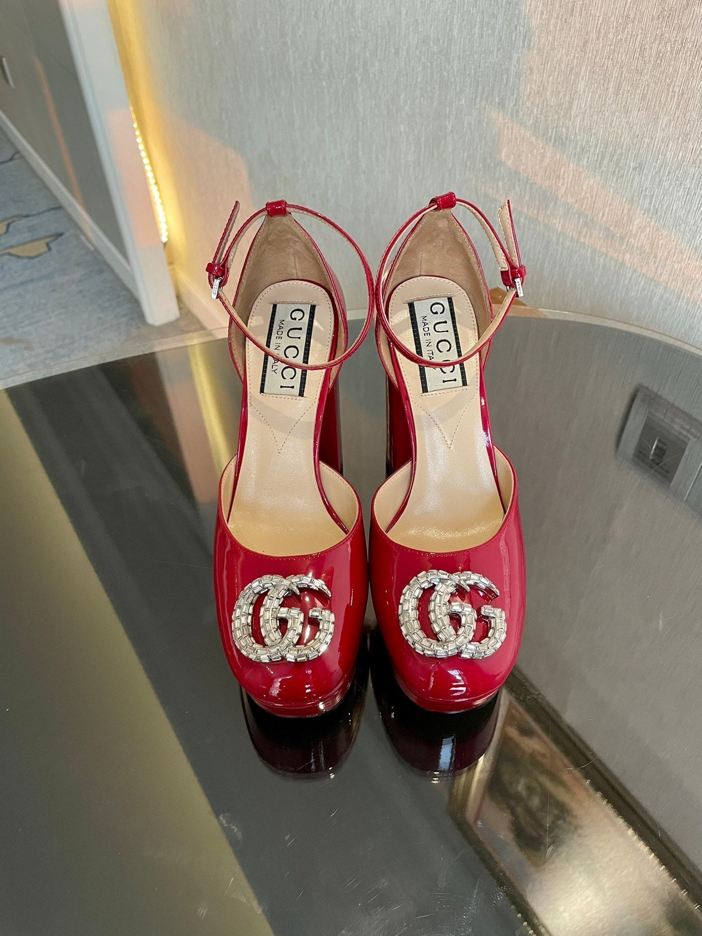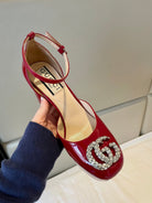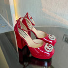 platform pump 12cm with double g red patent leather