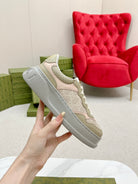 GG TRAINER LIGHT GRAY AND TORTILLA CALFSKIN