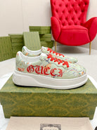 GG TRAINER SAGE CALFSKIN WITH FLOWERS PATTERN