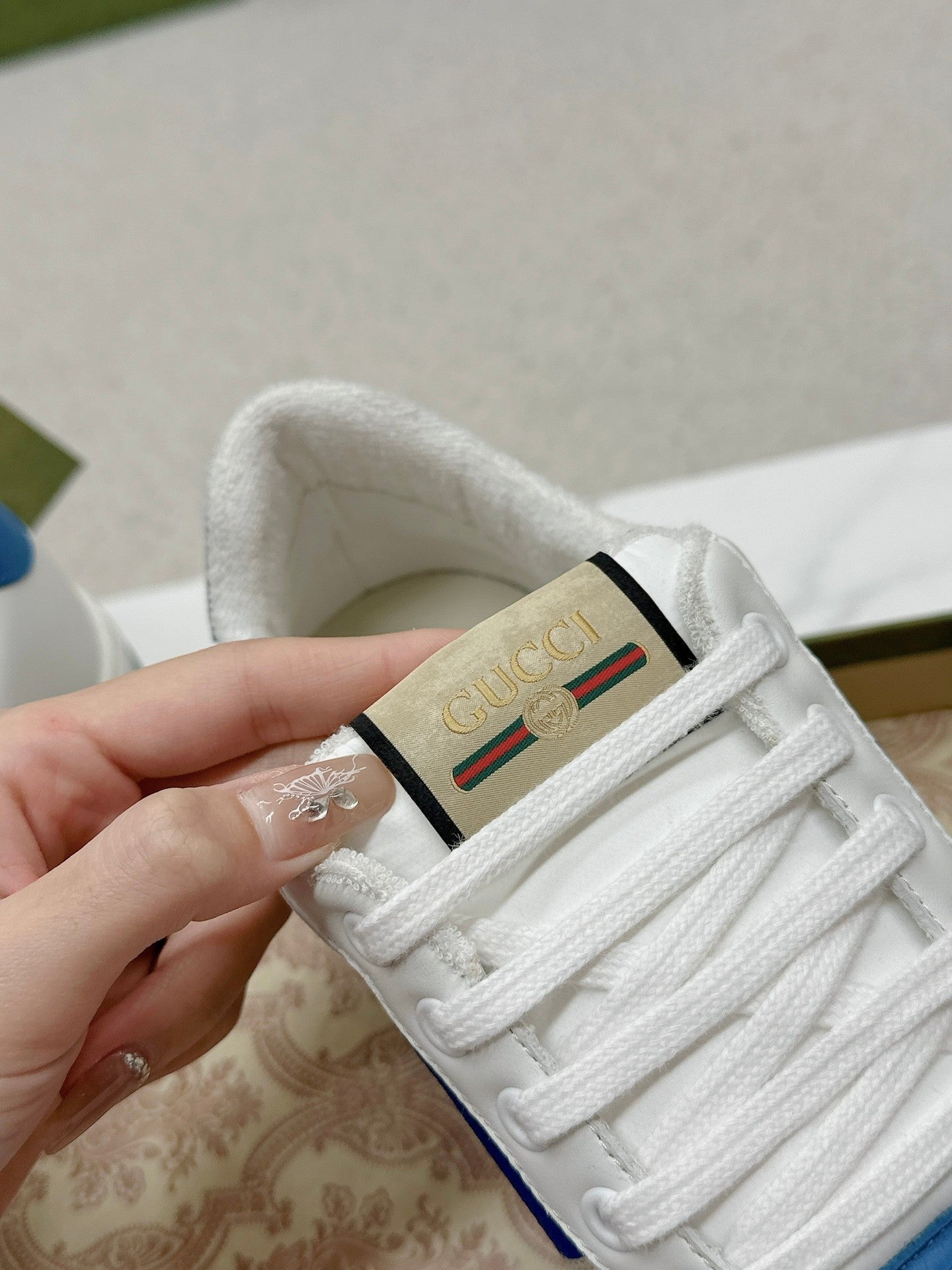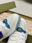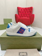 GG WOMEN'S SCREENER TRAINER WHITE AND BLUE CALFSKIN