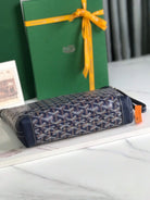 CONTI POUCH 24 IN NAVY BLUE LAMBSKIN AND GOYARDINE CANVAS