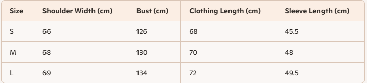 - Size: S, M, L