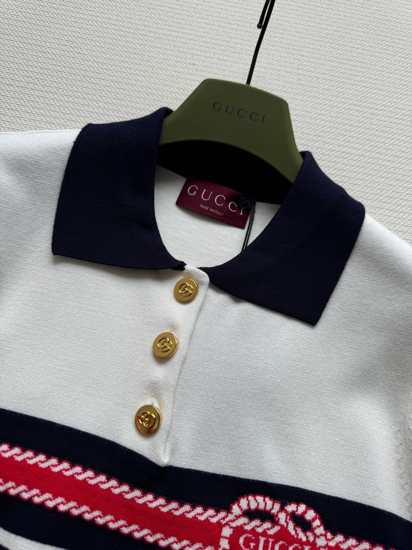 Gucci Striped Polo Knitted Top Cotton