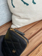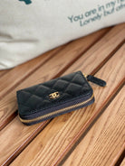 cc zipped wallet 7.5cm black caviar gold hardware