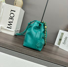 LOE MEDIUM 30 FLAMENCO PURSE BUCKET IN TEAL GREEN LAMBSKIN