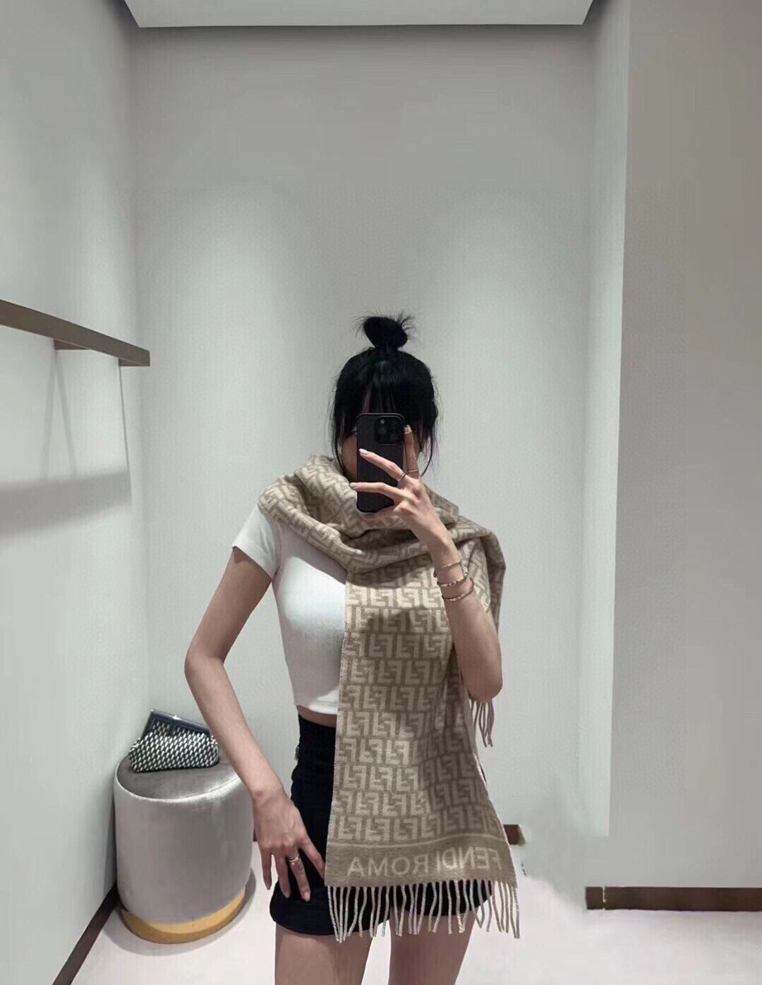 ROMA 190 FF SCRAF IN CAMEL BROWN MIX WHITE WOOL AND CASHMERE