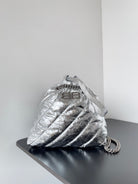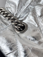 CRUSH SMALL TOTE BAG 26 IN SILVER QUILTED CALFSKIN SILVER HARDWARE